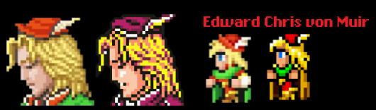 This is unfortunate because I really hate Edge. Despite being 26 he acts like a doofus teen. When Kain gets mind controlled he is the only one that seems reluctant to take him back, despite being the one least equipped to have an opinion on it. He also has a very obvious crush on Rydia, which is cute, but it doesn’t make up for him being something of an asshole. I would trade him for Yang or Cid if I could, but that is not possible.