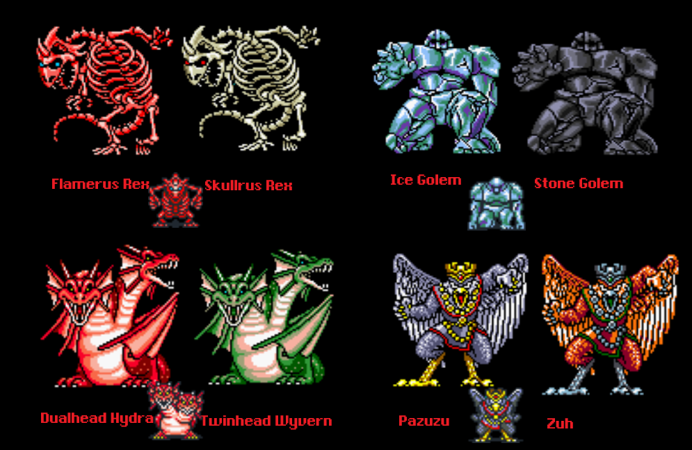 The Four Fiends return again and just like in the Famicom titles, they even come back from the dead at the very end of the game as part of a little boss gauntlet during the final dungeon. In the above compilation, the original bad guy is on the left while the revived one is on the right. The little fella in the middle is the overworld sprite of the original encounter. The final dungeon is probably my favorite dungeon of the game because it reminds me of Hyrule Castle in Ocarina of Time. What I mean by that is it’s comprised of tiny bite-size portions of the major dungeons you’ve encountered so far. This part of the game is pretty straight forward, so even the annoying ice pyramid isn’t so bad when it only lasts two screens. I’m just a sucker for when a game puts you through a microcosm of itself. It’s a trip down memory lane!