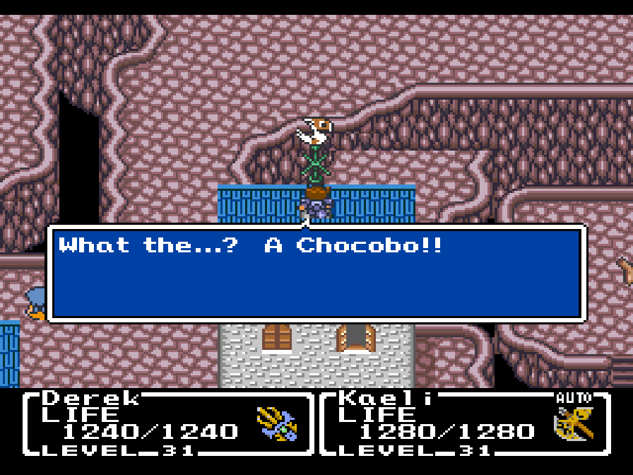 Both mentioned above. The no overworld thing is interesting because every mainline Final Fantasy title would have one until Final Fantasy X. Then they just kinda vanish until Final Fantasy XV. That’s not to say other SquareSoft titles evaded an overworld, the other beginner friendly Square title Super Mario RPG also chose to go with a level select screen, but it’s definitely interesting to see a SNES title with Final Fantasy branding just not have that.