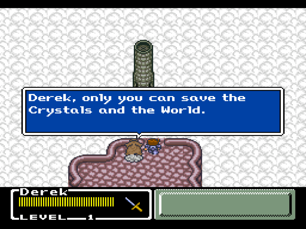 It starts out totally blank, implying that there is no true name for this fella. However, if you open the instruction manual, you will find out that his name is Benjamin. Very cool. I decided to just name him after myself, like any good middle schooler would do. “Benjamin” is the only character in the game that you get to name. So if you wanted a group of you and your best bros to take on the Dark King, well, too bad. I have referred to him as ‘the protagonist’ up to this point in this retrospective, so I will continue to do so. Though if I accidentally call him Benjamin, Benny, Ben or Benmothy…I apologize.