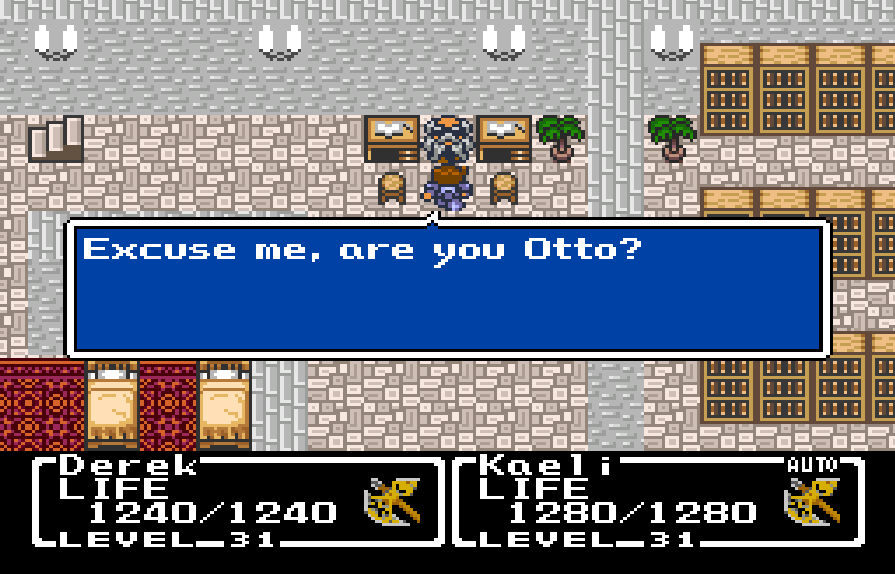 This guy’s full name is apparently Otto CID Bekenstein. That’s right, even Mystic Quest has a Cid! Now I didn’t encounter this anywhere in the game myself, but I read it online and I choose to believe it. It also makes sense because Cid is a mechanic which falls in line with every single incarnation of Cid ever up until this point.
