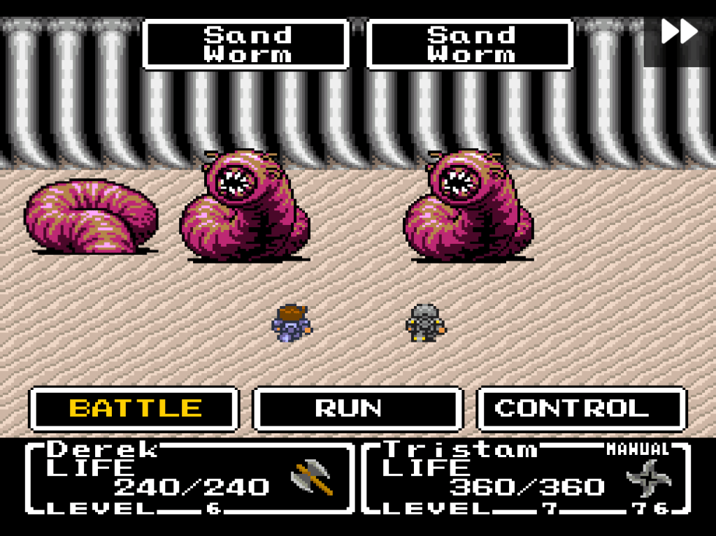 I will say that with two party members, encountering enemies that throw around status effects willy nilly can be slightly frustrating. There were a couple of times where both my party members were confused or asleep or something and I had to wait for the enemy AI to smack me before I could do anything. I also had a couple of unlucky battles where both of my fellas would get stoned right away, which is an instant game over. It doesn’t happen enough to be annoying but it does happen. Generally if you heal status effects as they come, it’s no big deal.
