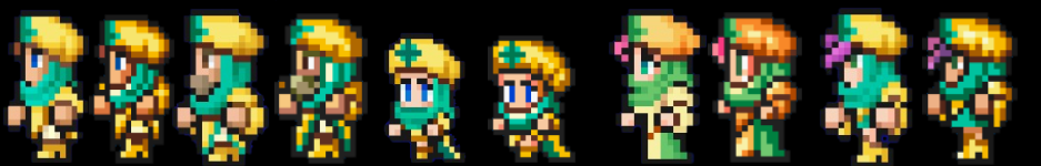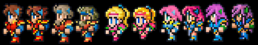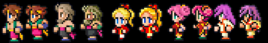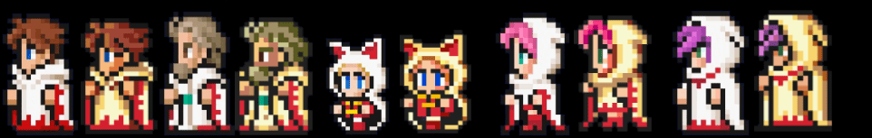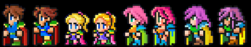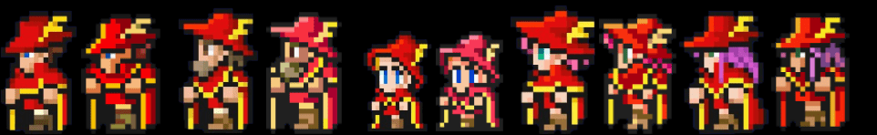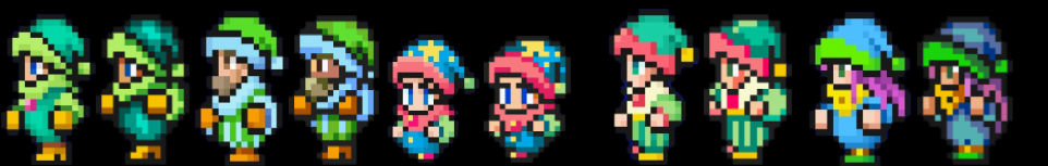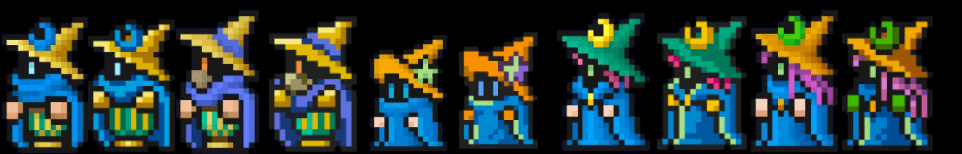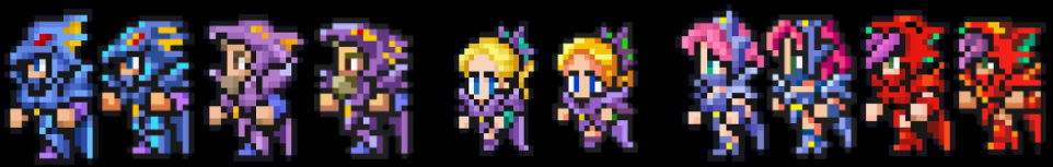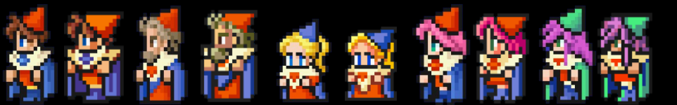 Best dressed: I don’t particularly like any of these. You can’t even tell who Lenna or Bartz are without seeing the other sprites for comparison. I guess my favorite one is Galuf because his pixel remaster sprite looks the closest to pajamas for me. This is the worst looking class in the game. They sort of remind me of Poppy Bros from Kirby.