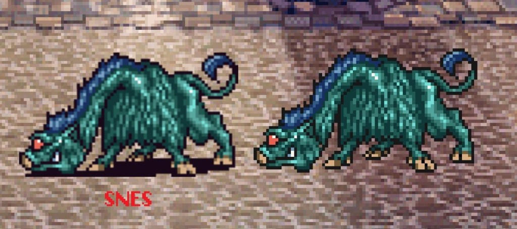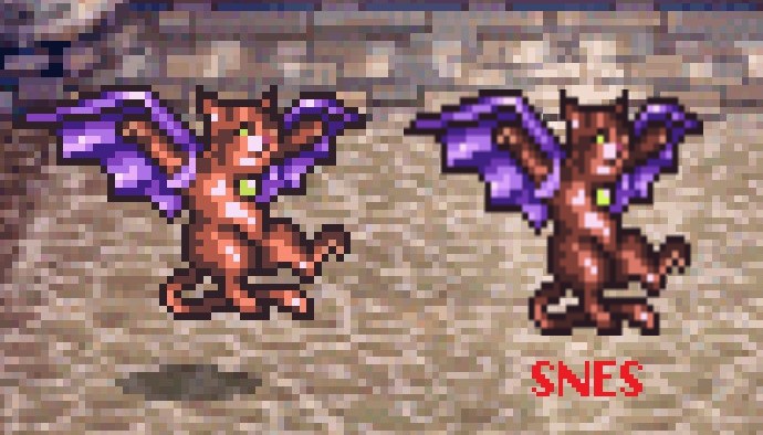 For reference, in all of the player character comparisons, the sprite order goes “Battle (Pixel Remaster), Battle (Super Famicom), Overworld (Pixel Remaster), Overworld (Super Famicom).” There are no character portraits here.
