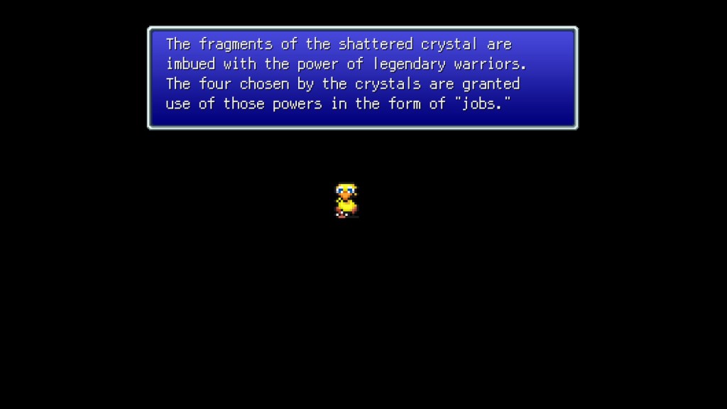 In V, you unlock all of your jobs incredibly rapidly. In this title, your new career paths are chosen for you by the shards of the shattered four elemental crystals. And before you have too much time to think on it, you have every job the game has to offer (save one). There aren’t any jobs that serve as replacements for other jobs, either. Each one has a different utility and can be useful at any point in the game.