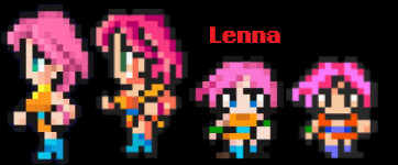 Lenna is the first party character you see in the game. Her father, the King of Tycoon, goes off to investigate the crystals and forbids her to go along. Lenna obviously does not listen to her father and goes off to the shrines as well – which is where she runs into Bartz and Galuf.