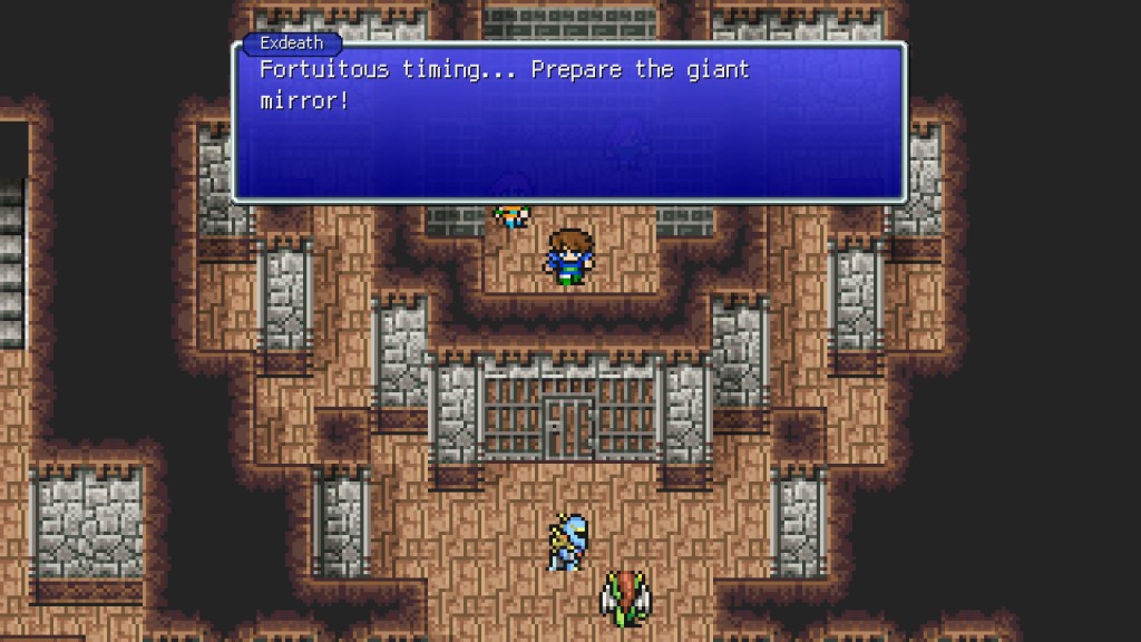 My first experience with FFV was through this fan translation. I wasn’t sure about its quality because, well, my previous fan translation experiences weren’t quite up to snuff. I remember excitedly playing the broken jibberish that was the 90s fan translation of Dragon Ball Z: Super Saiya Densetsu and Dragon Ball Z: Hyper Dimension and knowing I was getting an inferior product. I didn’t care, I was happy to play them! But when I got around to playing the FFV fan translation, I was aware of the PS1 release and my underdeveloped brain simply thought “well that one must be better because it’s official and I can buy it so uh I can stop with this I think.” Whoops!