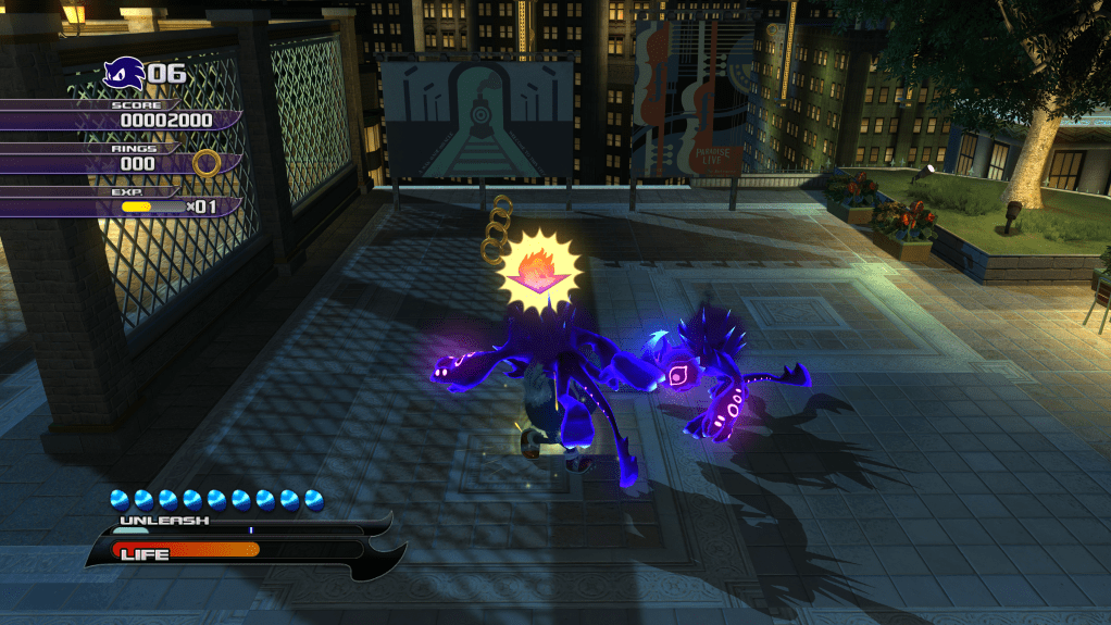 The “just Sonic” method brought us the werehog, which turns the speedy Sonic into a slower combat-focused beast. The speed of your character goes way down and the once quickly-dealt-with bad guys become sluggish individual encounters. These segments play like a budget God of War title. You have combos you can pull off, but you never really need to do that. Just mashing and occasionally blocking and dodging will carry you to victory. It’s nothing complex.